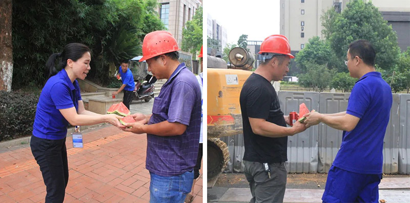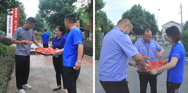 7月28日,波隆水務(wù)集團(tuán)管理層為冒高溫、戰(zhàn)酷暑的生產(chǎn)一線職工送去公司的關(guān)懷與慰問(wèn)。