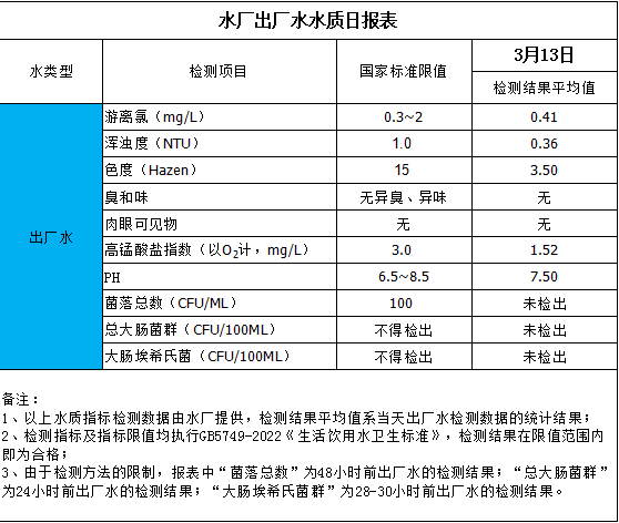 水廠出廠水水質(zhì)日報表(2025-3-13)