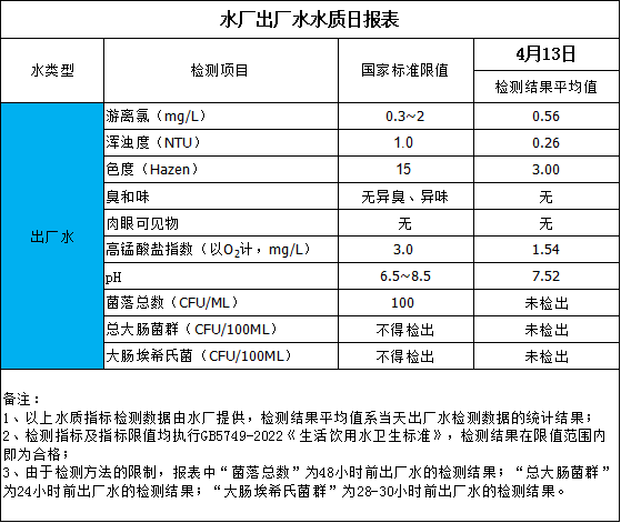 水廠出廠水水質(zhì)日報表(2025-4-13)