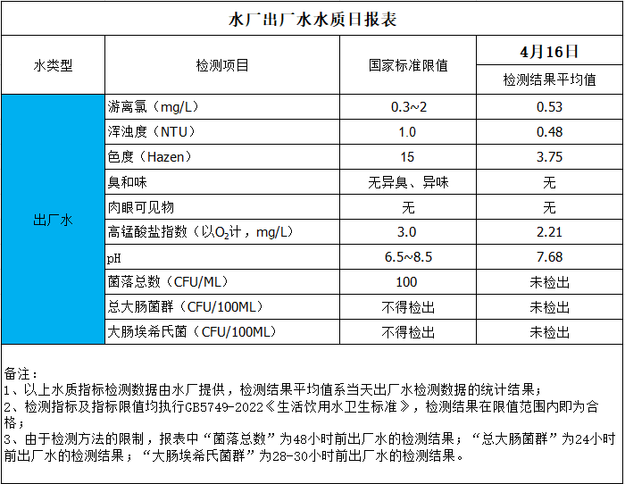 水廠出廠水水質(zhì)日報表(2025-4-16)