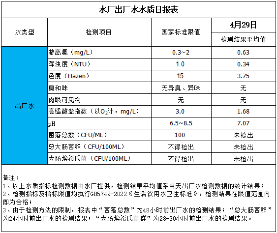 水廠出廠水水質(zhì)日報表(2025-4-29)