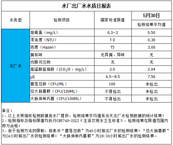 水廠出廠水水質(zhì)日報(bào)表(2025-5-30)
