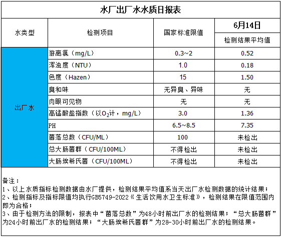 水廠出廠水水質(zhì)日?qǐng)?bào)表(2025-6-14)