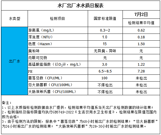 水廠出廠水水質(zhì)日?qǐng)?bào)表(2025-7-2)
