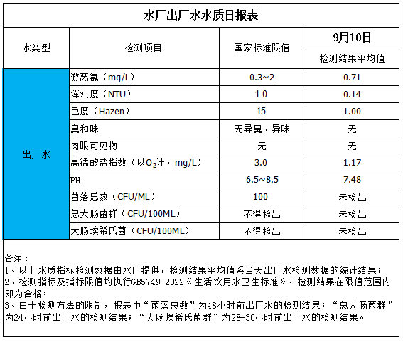 水廠出廠水水質(zhì)日報表(2025-9-10)