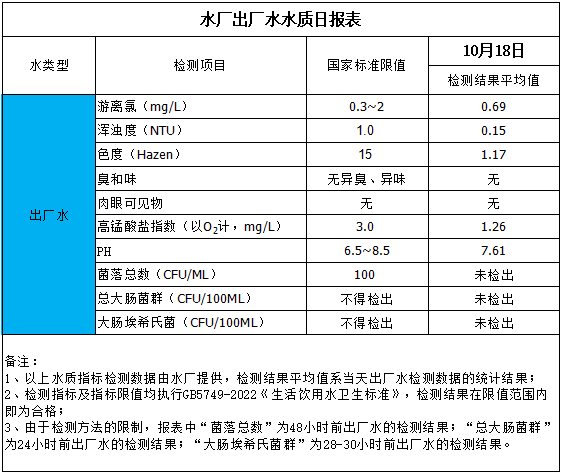 水廠出廠水水質(zhì)日?qǐng)?bào)表(2025-10-18)