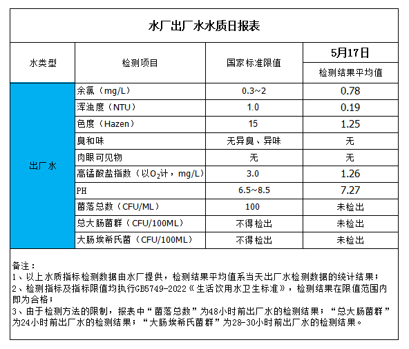 水廠出廠水水質(zhì)日報(bào)表(2023-5-17)