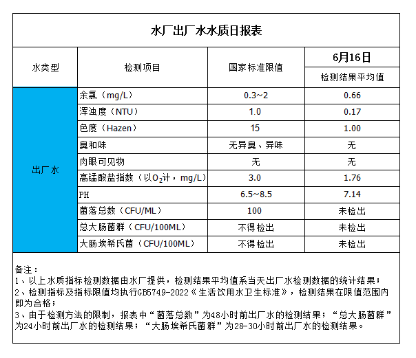 水廠出廠水水質(zhì)日?qǐng)?bào)表(2023-6-16)
